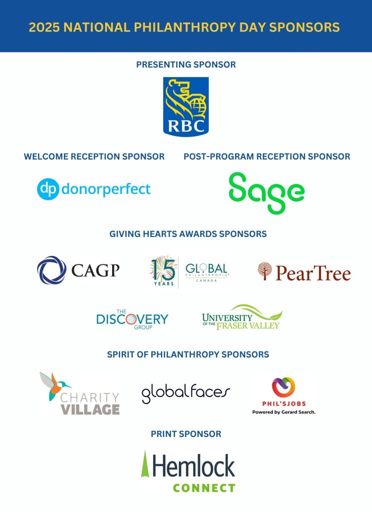 We extend our heartfelt gratitude to our 2025 event sponsors. Please contact info@afpgreatervancouver.org to request more information on how your brand can become a part of one of the biggest celebrations of philanthropy in Western Canada!